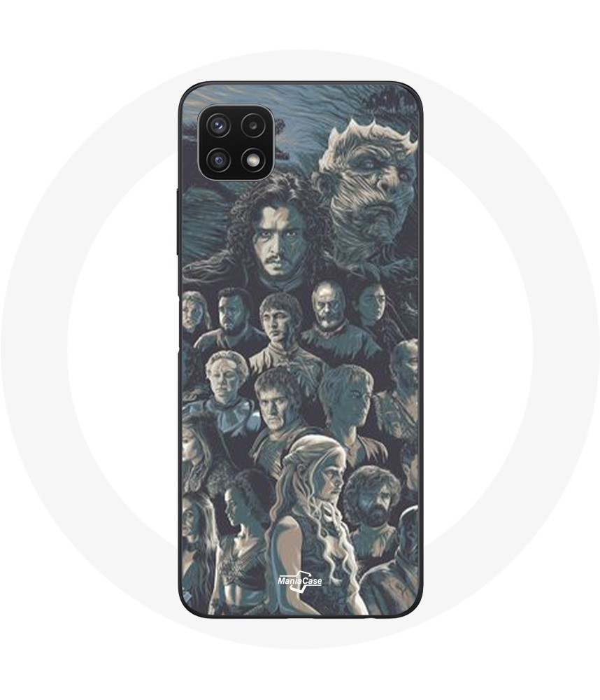 Coque pour Samsung Galaxy A22 5G Game of Thrones Saison 8 Le Trône de Fer Affiche Personnages Fond Gris