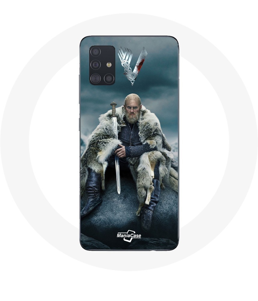 Coque pour Samsung Galaxy A51 5G Vikings Série Saison 6 Ragnar Lothbrok logo V Epée Gris Fond Brouillard