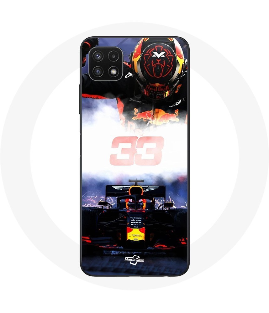 Coque pour Samsung Galaxy A22 5G Formule 1 Max Verstappen Pilote de F1 noir rouge et jaune