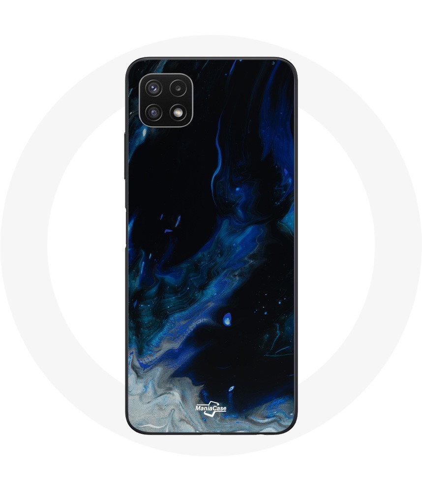 Coque pour Samsung Galaxy A22 5G Nuages de fumée multicolore de bleu gris et noir sur fond noir