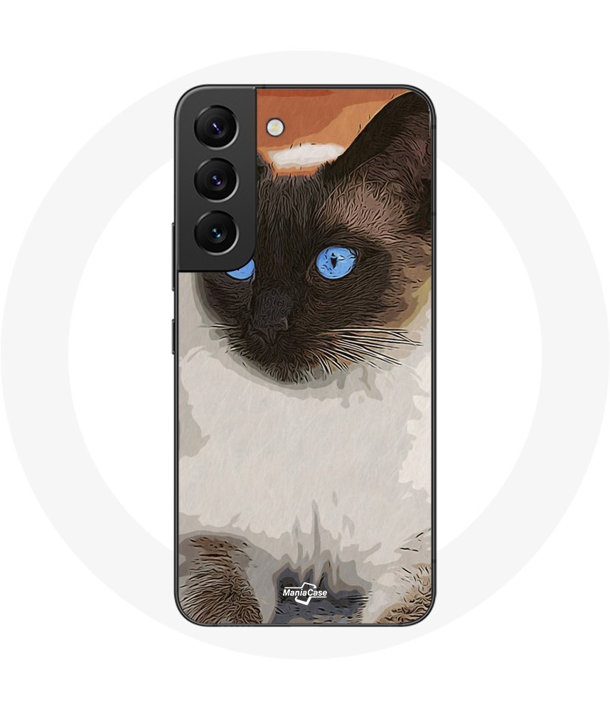 Coque pour Samsung Galaxy S22 Chat Siamois Noir et blanc Yeux Bleus