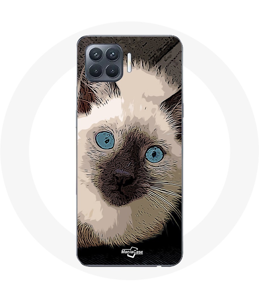 Coque pour Oppo A93 Chat Siamois Noir et blanc aux Yeux Bleus