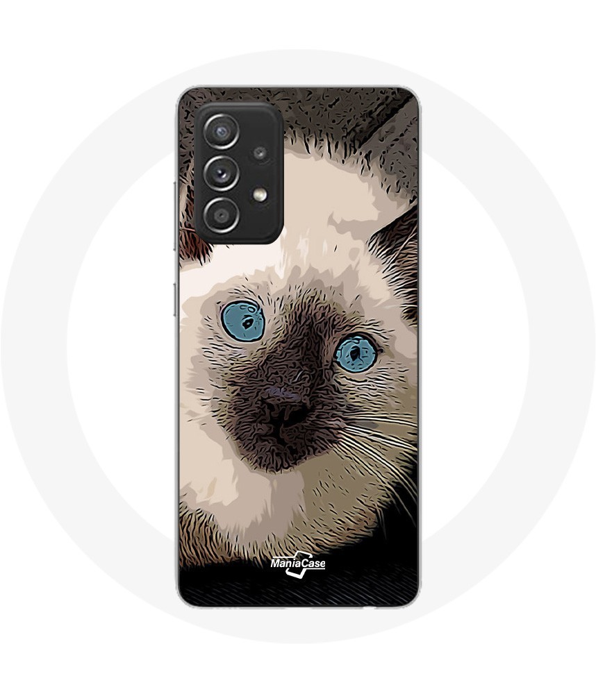 Coque pour Samsung Galaxy A52 Chat Siamois Noir et blanc aux Yeux Bleus