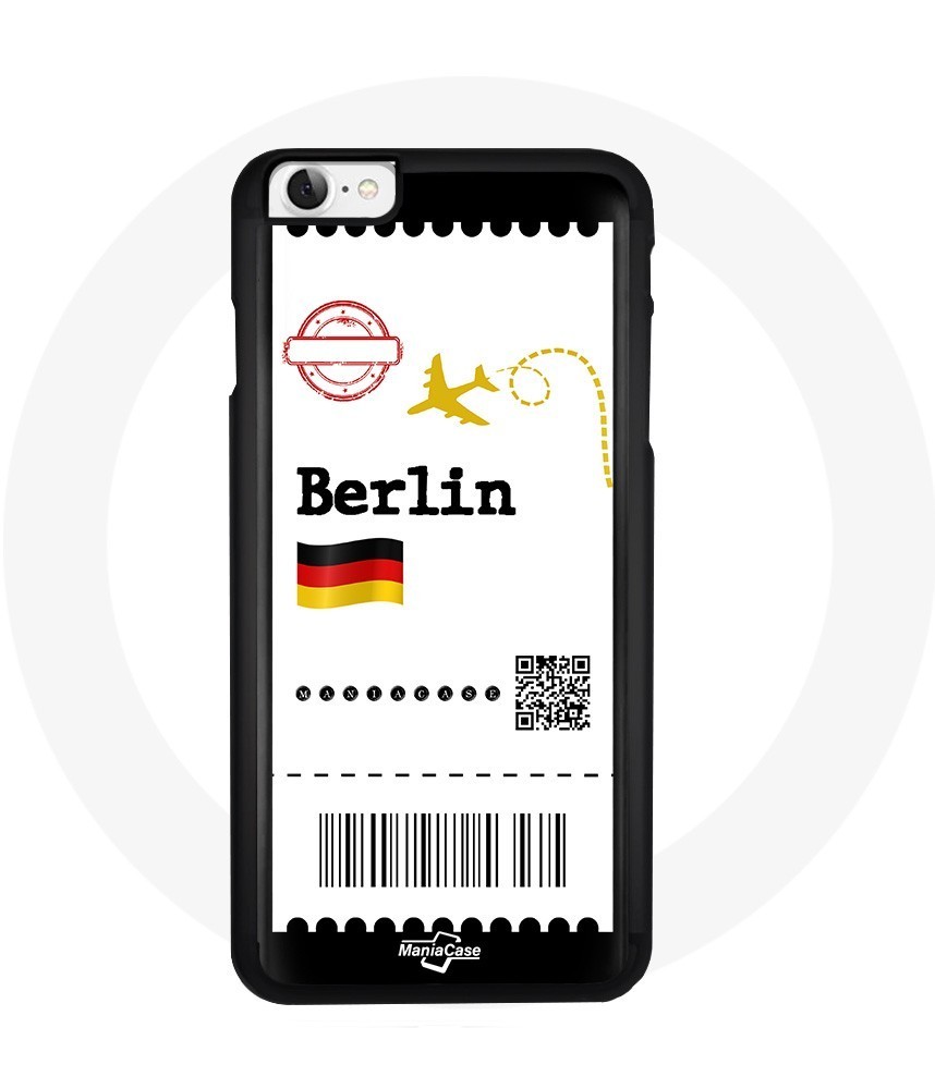 Coque Iphone 6 design Berlin Allemand carte embarquement avion foot east side rouge noir jaune Dortmunt code