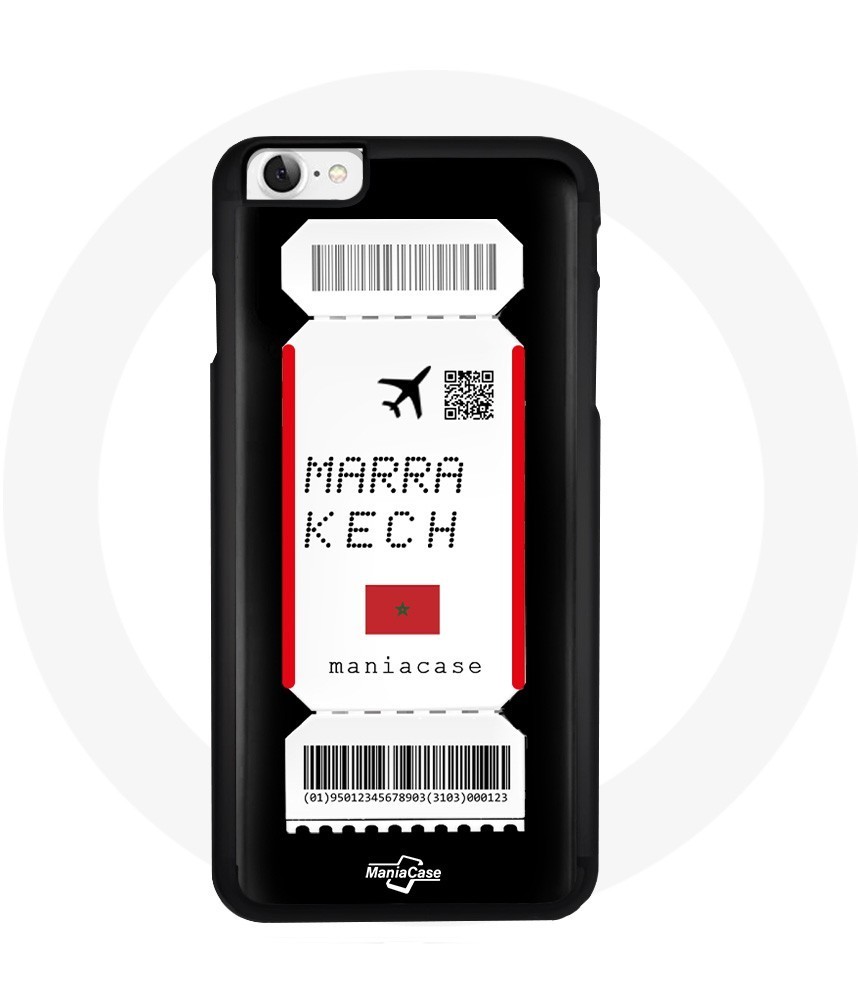 Coque Iphone 7 design carte embarquement Marrakech dromadaire chameau soleil quad noir blanc rouge billet avion
