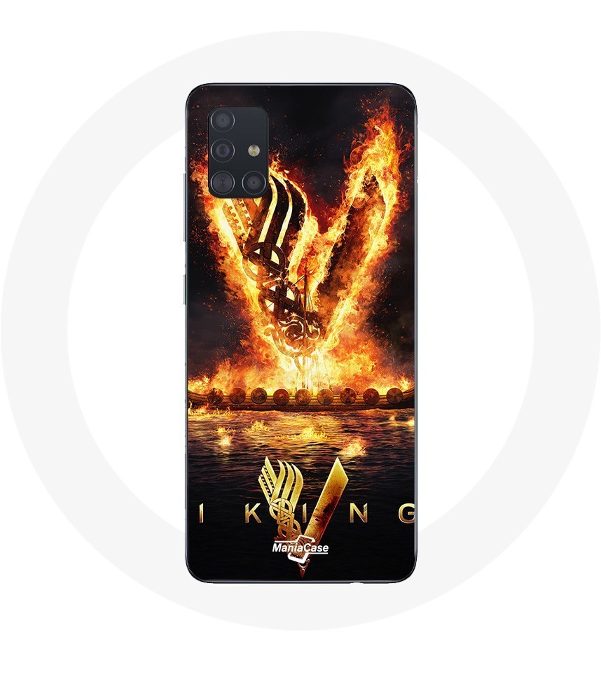 Coque pour Samsung Galaxy A51 5G Vikings Série Saison 6 logo V Epée de Feu Fond Noir