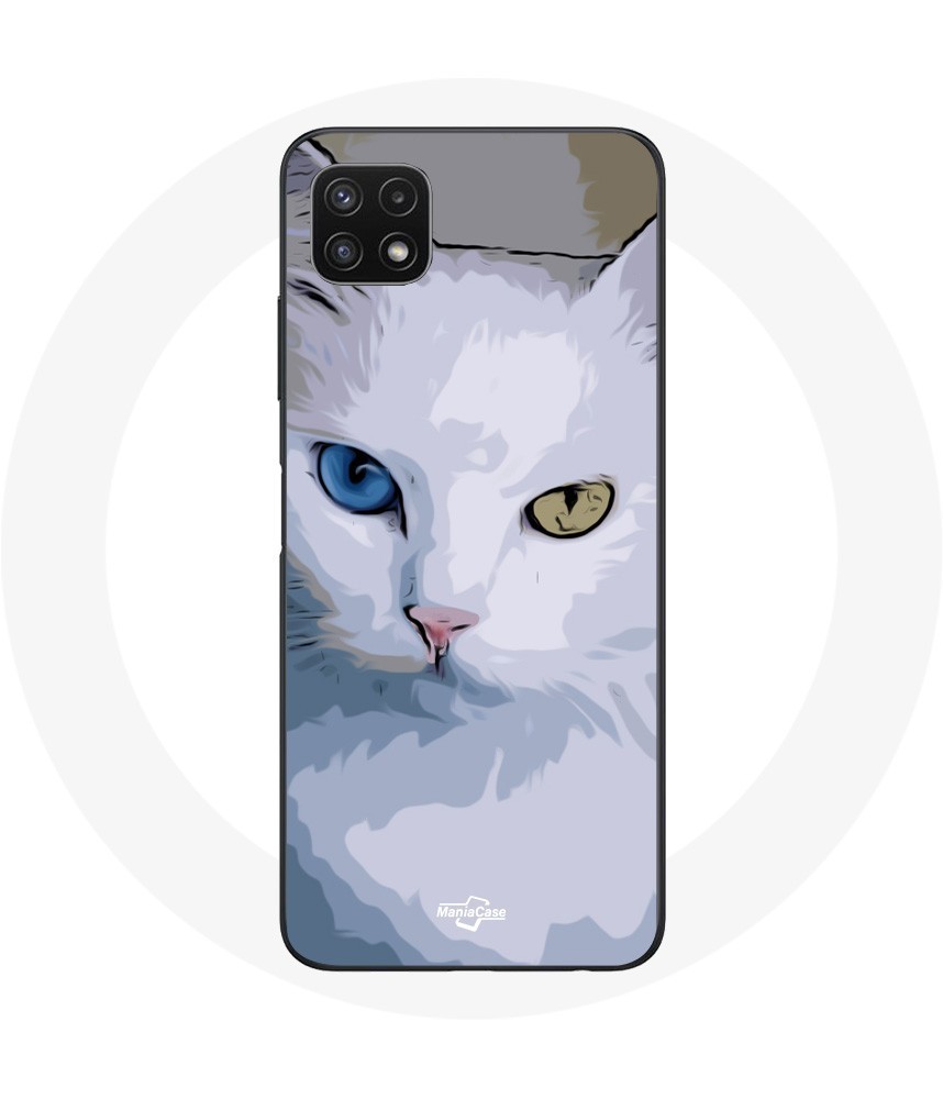 Coque pour Samsung Galaxy A22 5G Turc de van Chat oeil bleu et oeil jaune