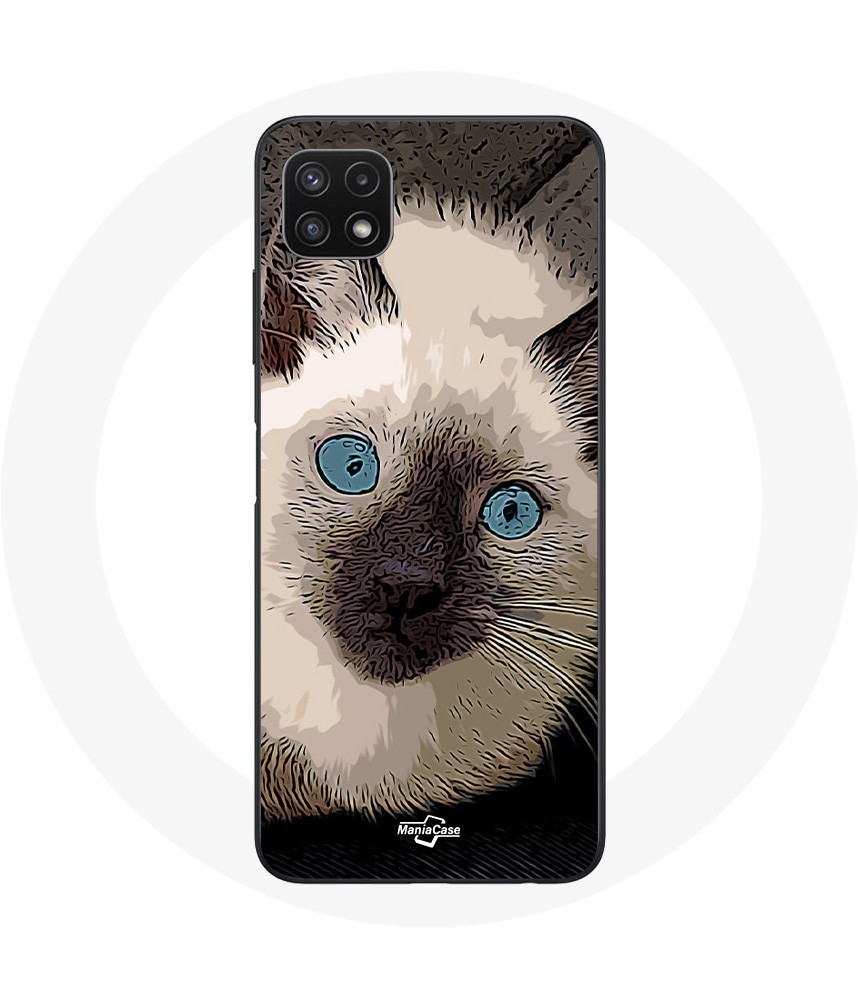 Coque pour Samsung Galaxy A22 5G Chat Siamois Noir et blanc aux Yeux Bleus