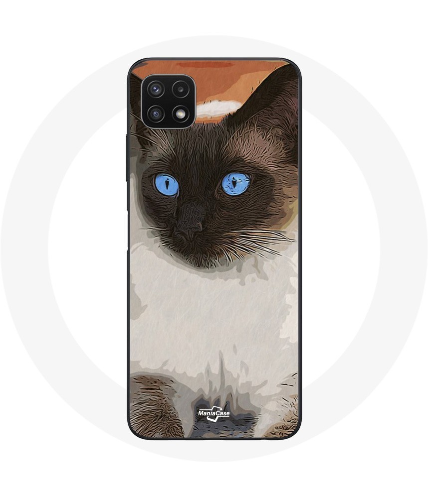Coque pour Samsung Galaxy A22 5G Chat Siamois Noir et blanc Yeux Bleus