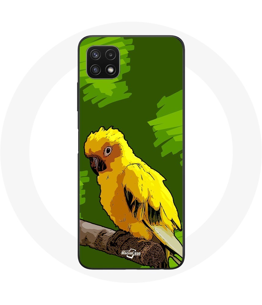 Coque pour Samsung Galaxy A22 5G Oiseaux de Perruches jaune Fond Vert