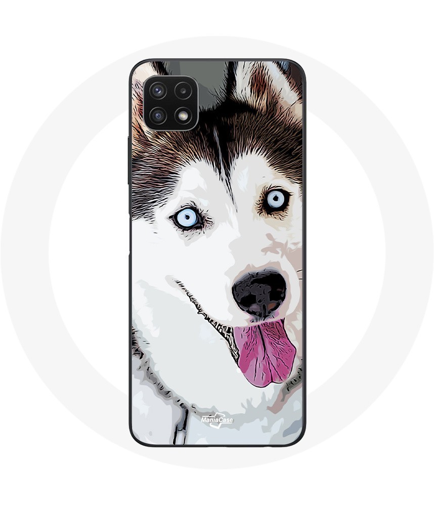 Coque pour Samsung Galaxy A22 5G Husky Blanc de Sibérie Yeux Bleus