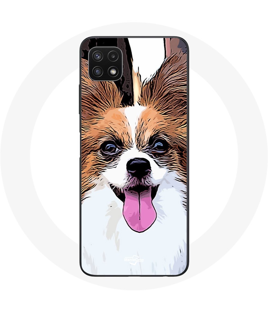 Coque pour Samsung Galaxy A22 5G Épagneul nain continental papillon Chiot Blanc et marron