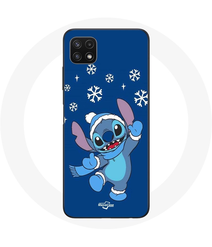 Coque pour Samsung Galaxy A22 5G Stitch neige Noël bleu