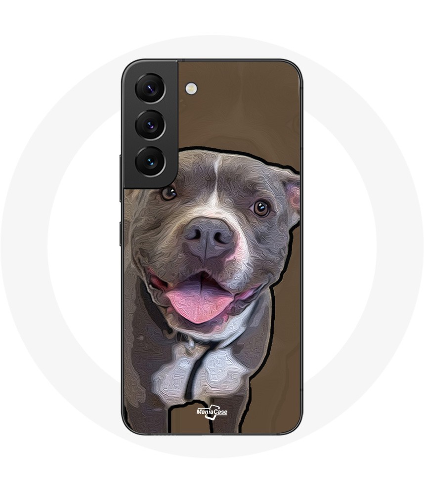 Coque pour Samsung Galaxy S22 Chien Pitbull Blanc gris