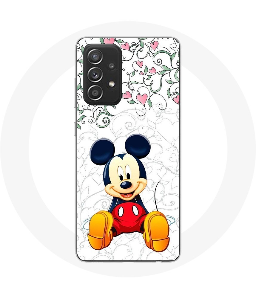 Coque pour Samsung Galaxy A52 Mickey Mouse Fleurs Cœurs