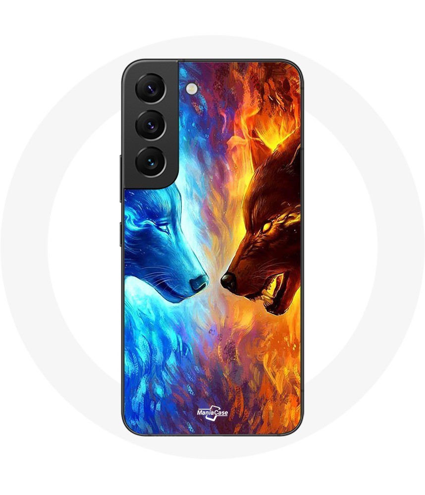 Coque pour Samsung Galaxy S21 FE Loup de Glace et de feu