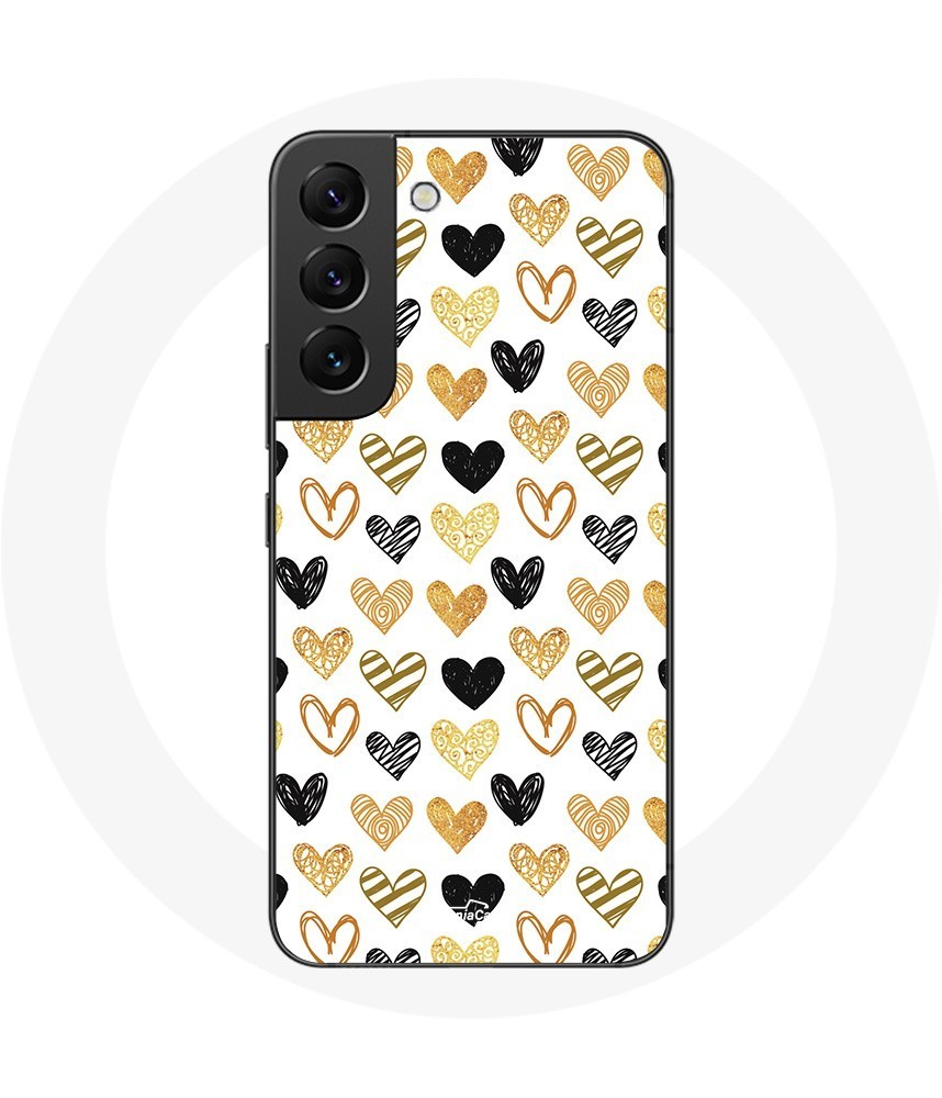Coque pour Samsung Galaxy S21 FE Fond de texture abstraite coeurs noir jaune et gris