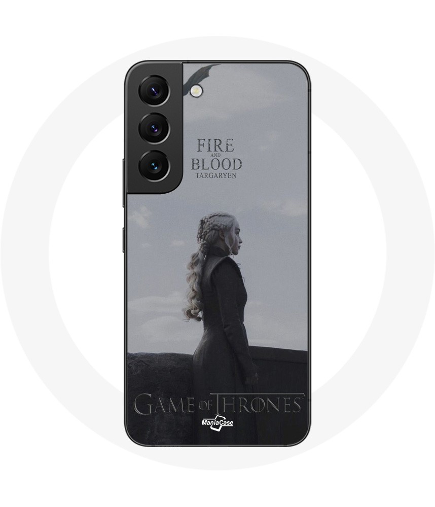 Coque pour Samsung Galaxy S22 Game of Thrones Saison 8 Daenerys Targaryen feu et sang Le Trône de Fer Logo Gris