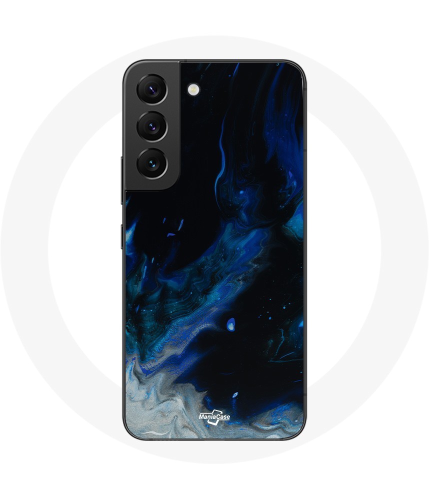 Coque pour Samsung Galaxy S22 Nuages de fumée multicolore de bleu gris et noir sur fond noir