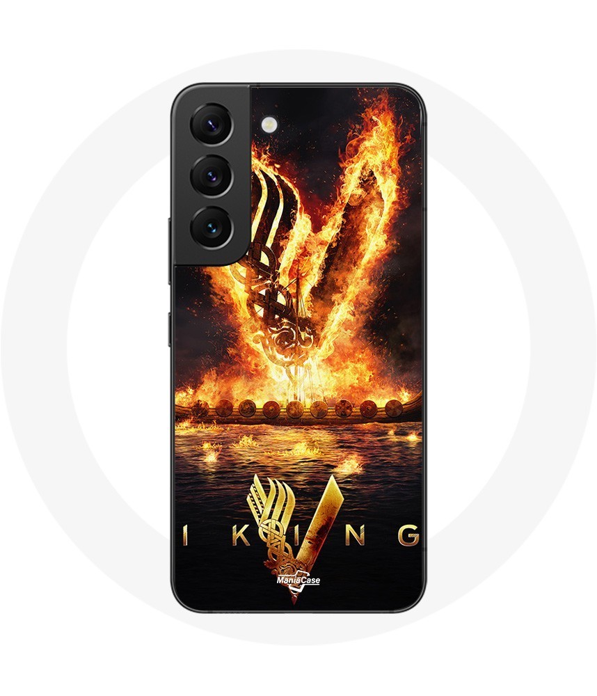 Coque pour Samsung Galaxy S21 FE Vikings Série Saison 6 logo V Epée de Feu Fond Noir