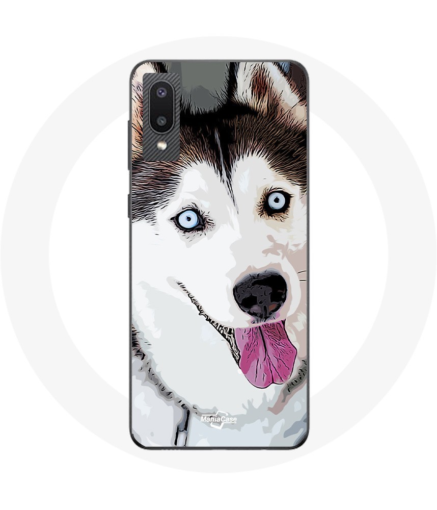 Coque pour Samsung Galaxy A02 Husky Blanc de Sibérie Yeux Bleus