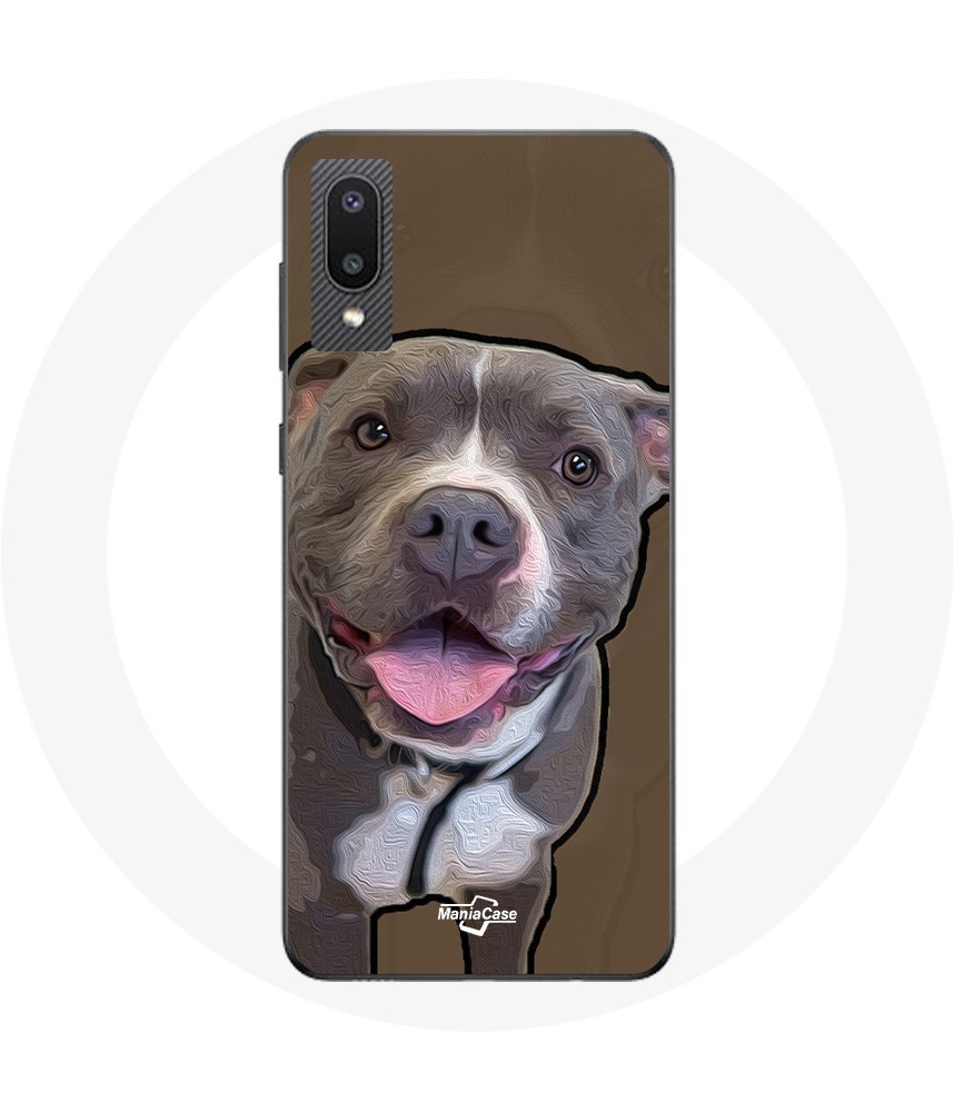 Coque pour Samsung Galaxy A02 Chien Pitbull Blanc gris