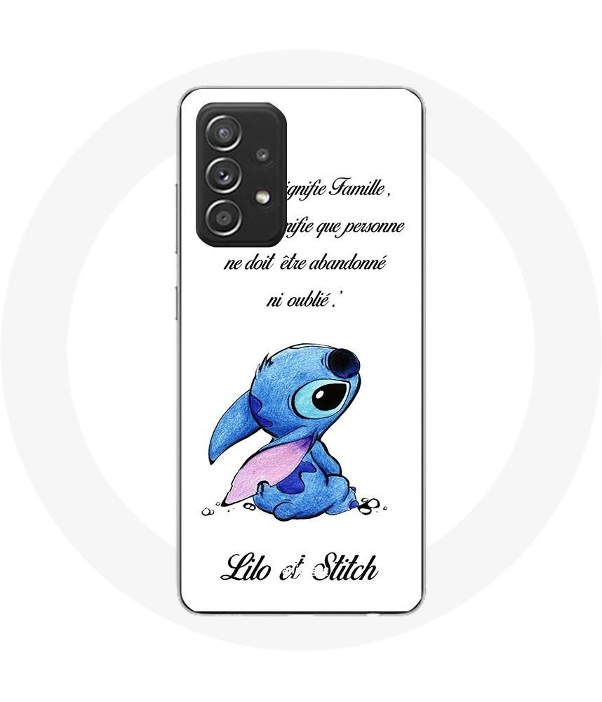 Coque pour Samsung Galaxy A52 Lilo et Stitch Ohana Citation Blanc