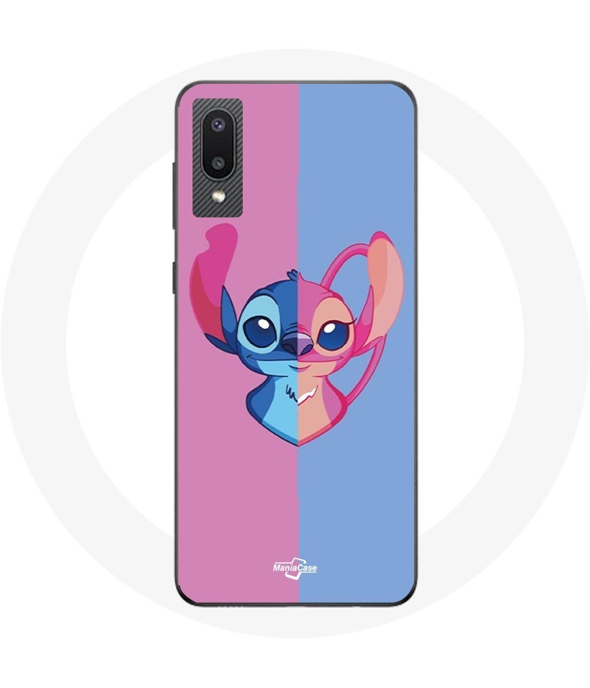 Coque pour Samsung Galaxy A02 Stitch et angel bleu rose