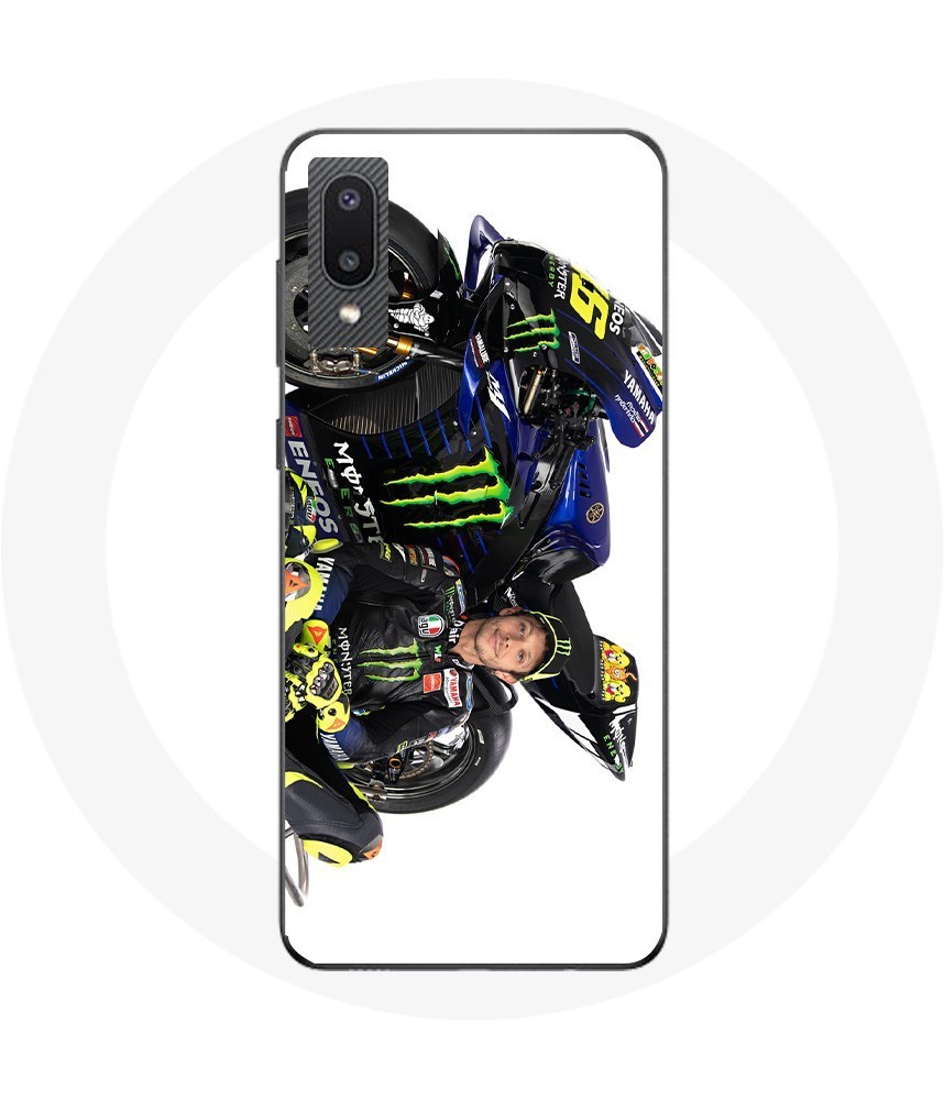 Coque pour Samsung Galaxy A02 Valentino Rossi Pilote de vitesse fond blanc