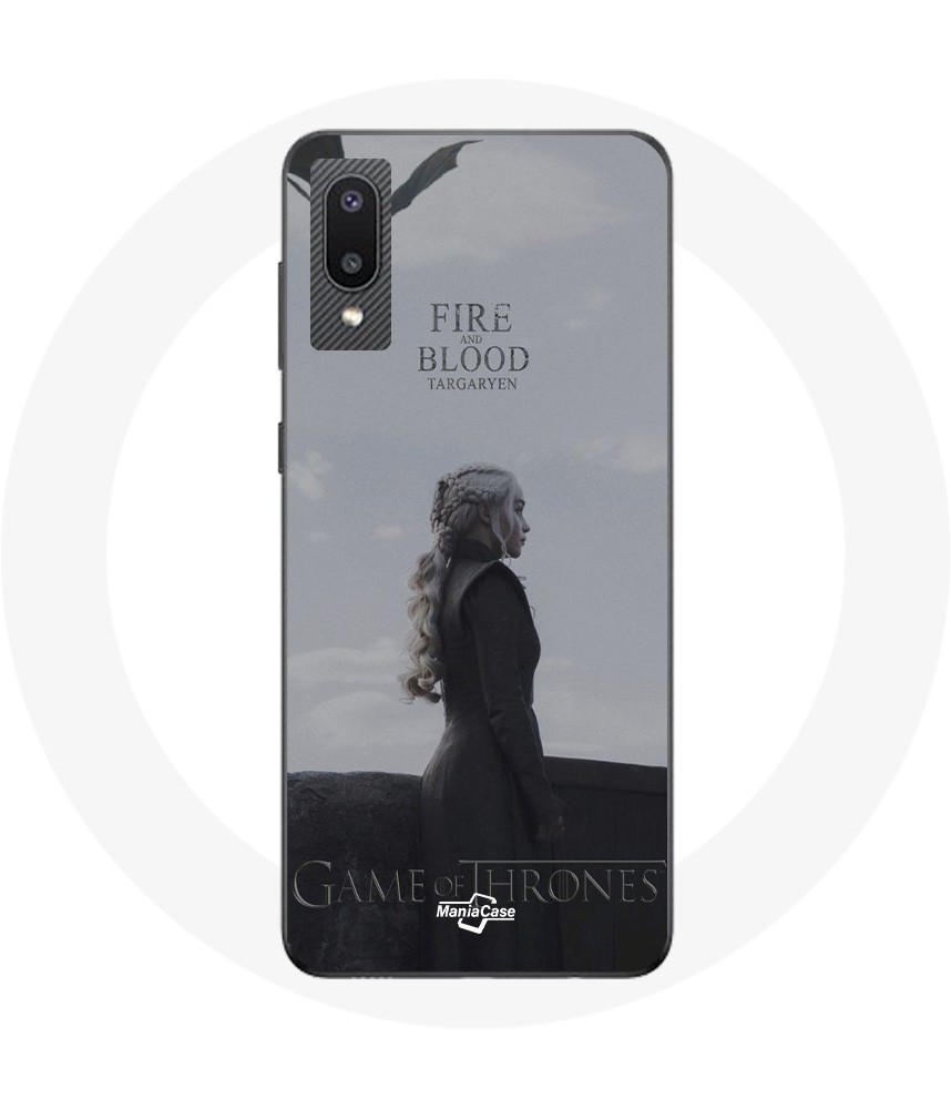 Coque pour Samsung Galaxy A02 Game of Thrones Saison 8 Daenerys Targaryen feu et sang Le Trône de Fer Logo Gris