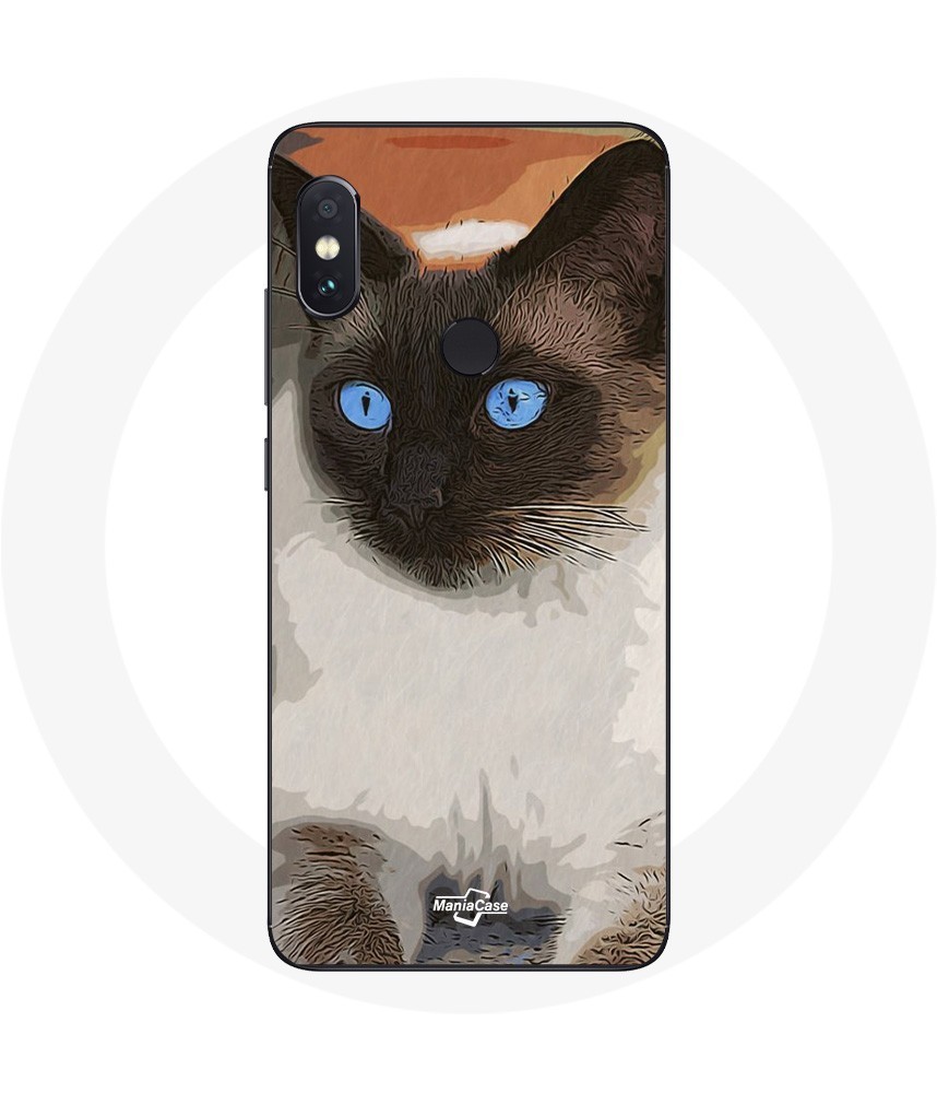 Coque pour Xiaomi Redmi Note 5 AI Dual Camera Chat Siamois Noir et blanc Yeux Bleus