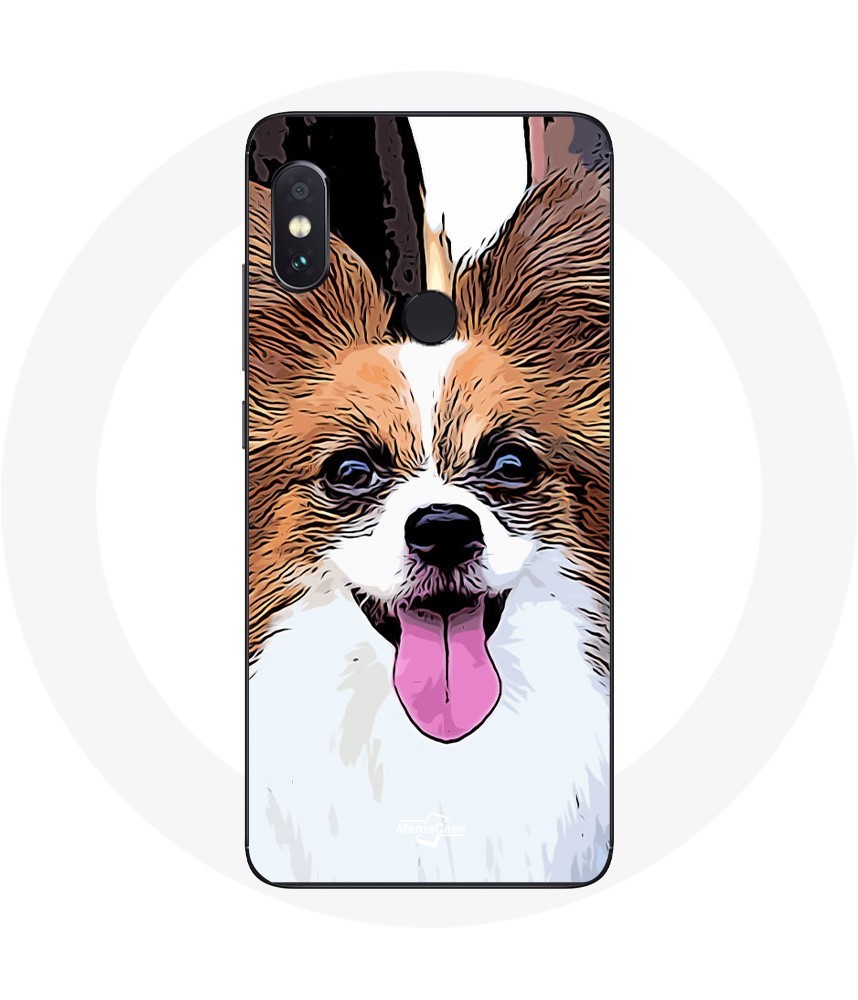 Coque pour Xiaomi Redmi Note 5 AI Dual Camera Épagneul nain continental papillon Chiot Blanc et marron