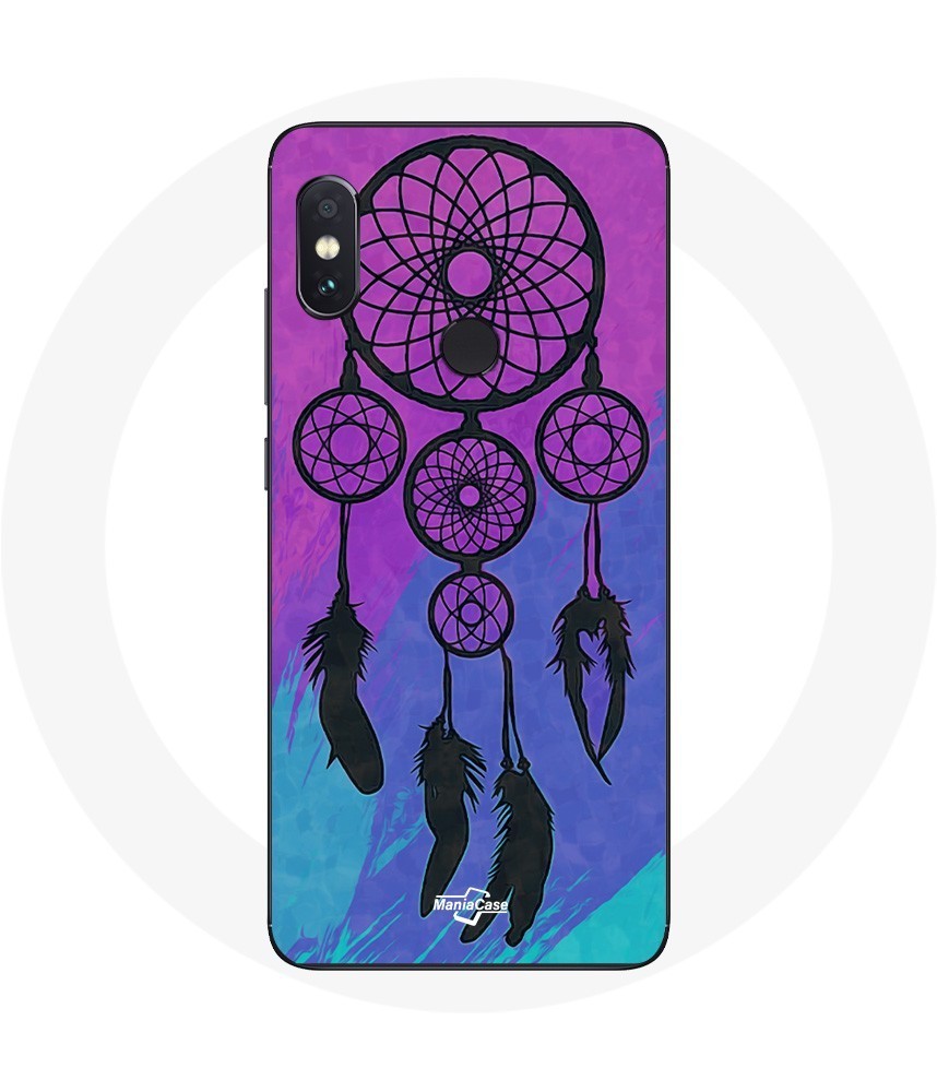 Coque pour Xiaomi Redmi Note 5 AI Dual Camera Attrape Rêve Noir Fond Bleu et Violet