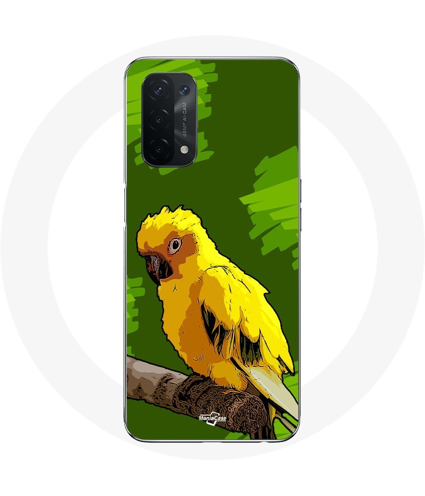 Coque pour Oppo A54 5G Oiseaux de Perruches jaune Fond Vert