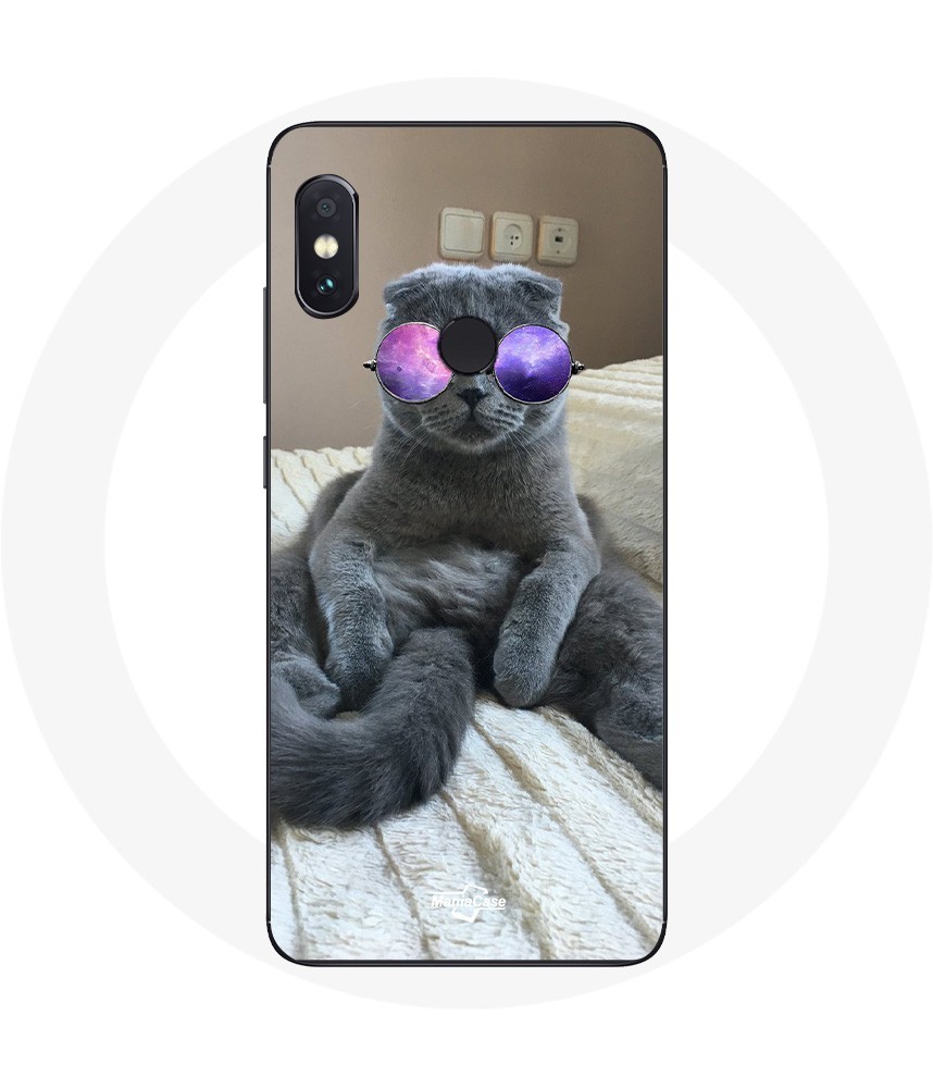 Coque pour Xiaomi Redmi Note 5 Pro Chat avec Lunettes de vue violettes