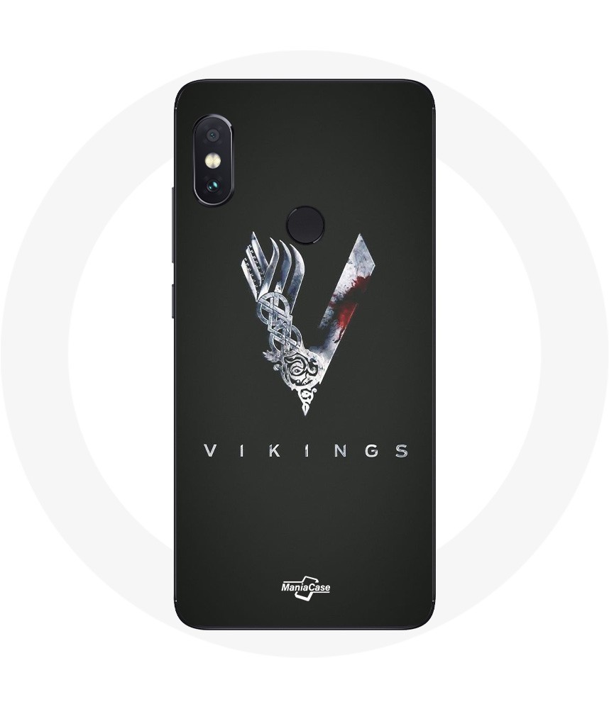Coque pour Xiaomi Redmi Note 5 Pro Vikings Série Saison 6 logo V Epée Gris Fond Noir