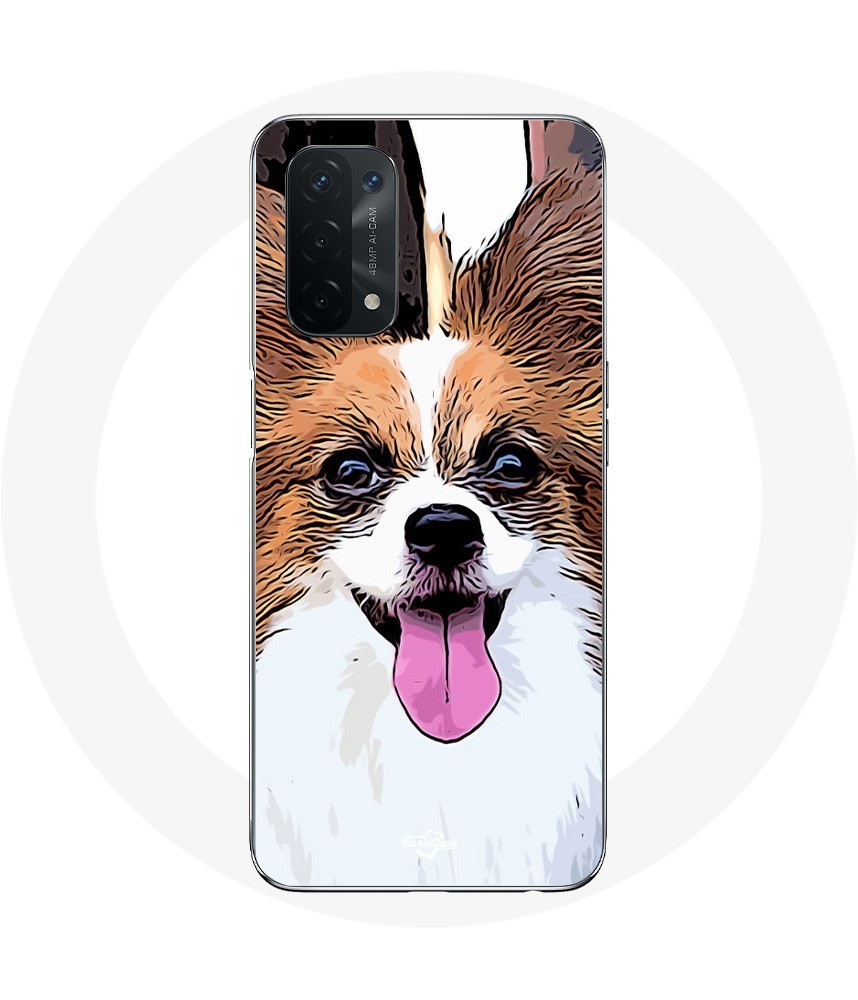 Coque pour Oppo A54 5G Épagneul nain continental papillon Chiot Blanc et marron