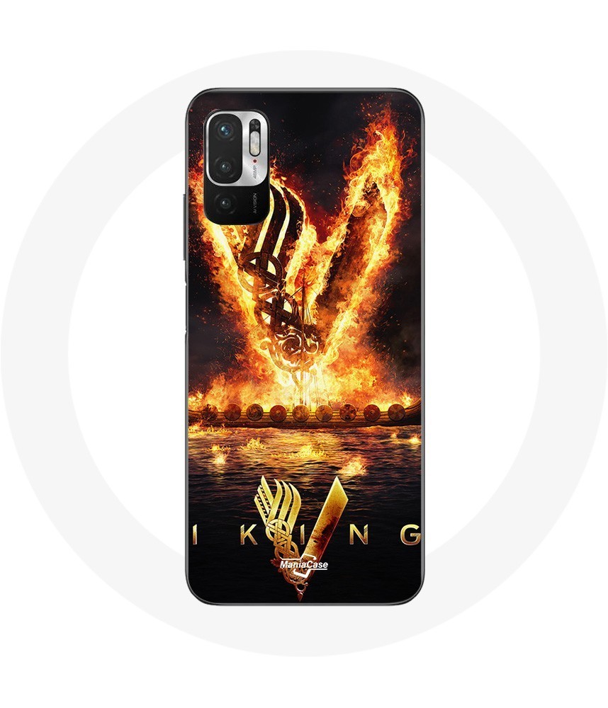 Coque pour Xiaomi Poco M3 Pro Vikings Série Saison 6 logo V Epée de Feu Fond Noir