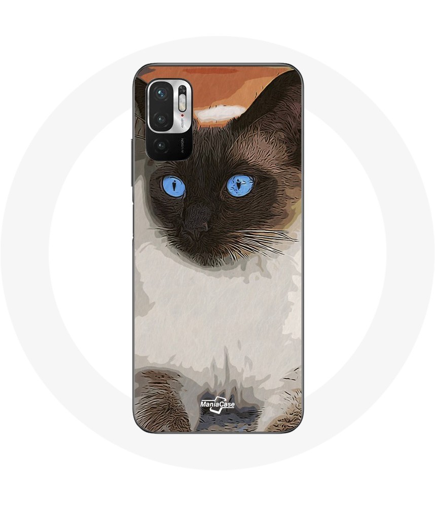 Coque pour Xiaomi Redmi Note 10T 5G Chat Siamois Noir et blanc Yeux Bleus