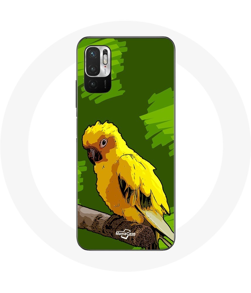 Coque pour Xiaomi Redmi Note 10 5G Oiseaux de Perruches jaune Fond Vert