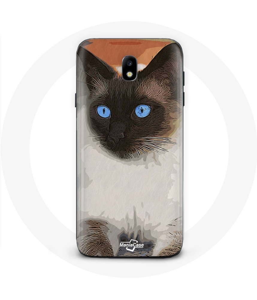 Coque Samsung Galaxy J3 2017 Chat Siamois Noir et blanc Yeux Bleus