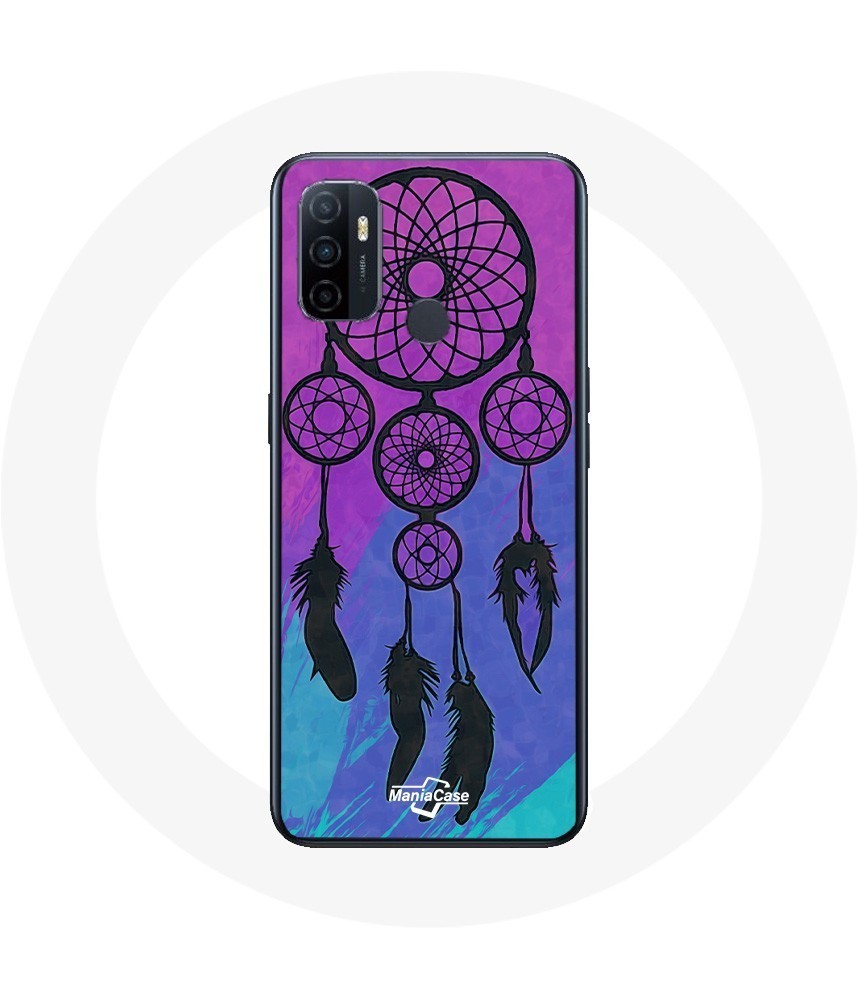 Coque Oppo A53 Attrape Rêve Noir Fond Bleu et Violet