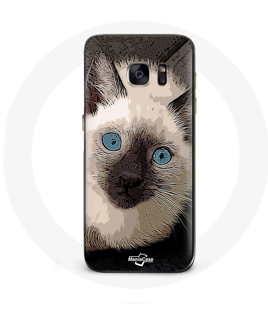 Coque Samsung Galaxy S7 Chat Siamois Noir et blanc aux Yeux Bleus