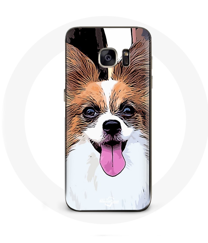 Coque Samsung Galaxy S7 Épagneul nain continental papillon Chiot Blanc et marron