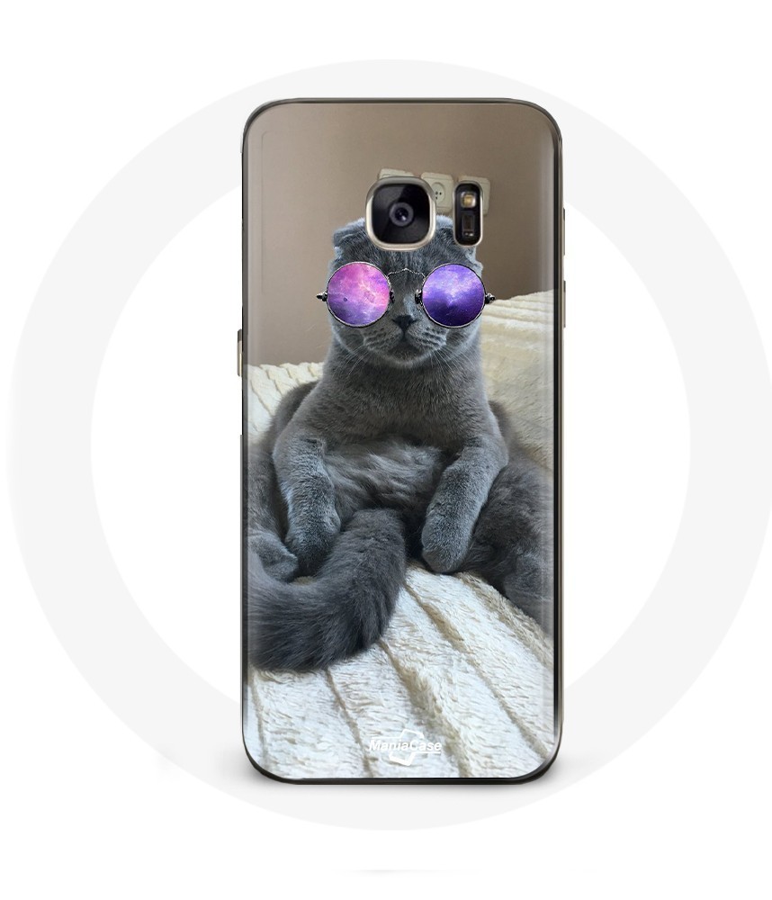 Coque Samsung Galaxy S7 Chat avec Lunettes de vue violettes