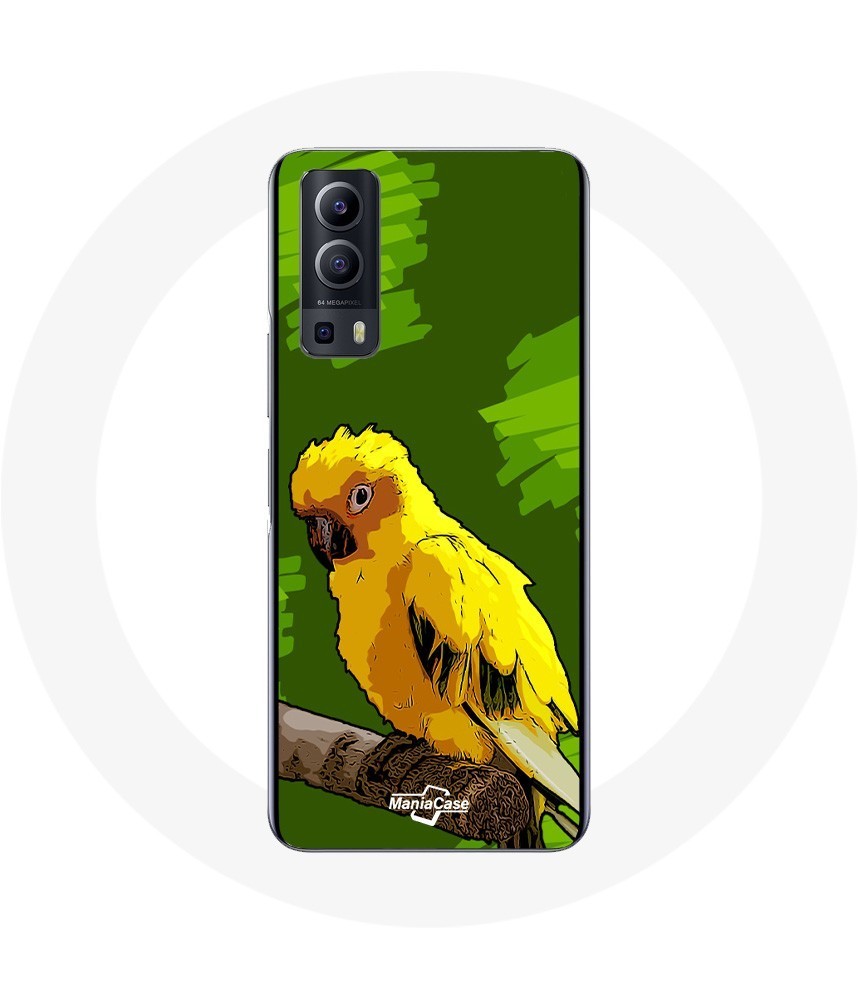 Coque Vivo Y72 Oiseaux de Perruches jaune Fond Vert
