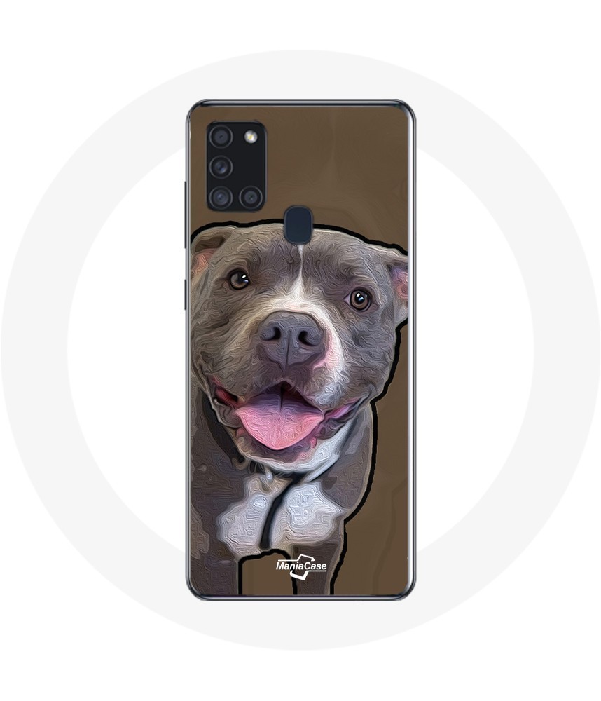 Coque Samsung Galaxy A21S Chien Pitbull Blanc gris