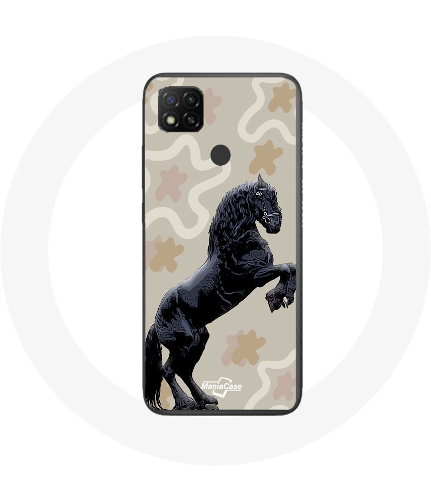 Coque Xiaomi Redmi 9C Frison Noir Race de cheval