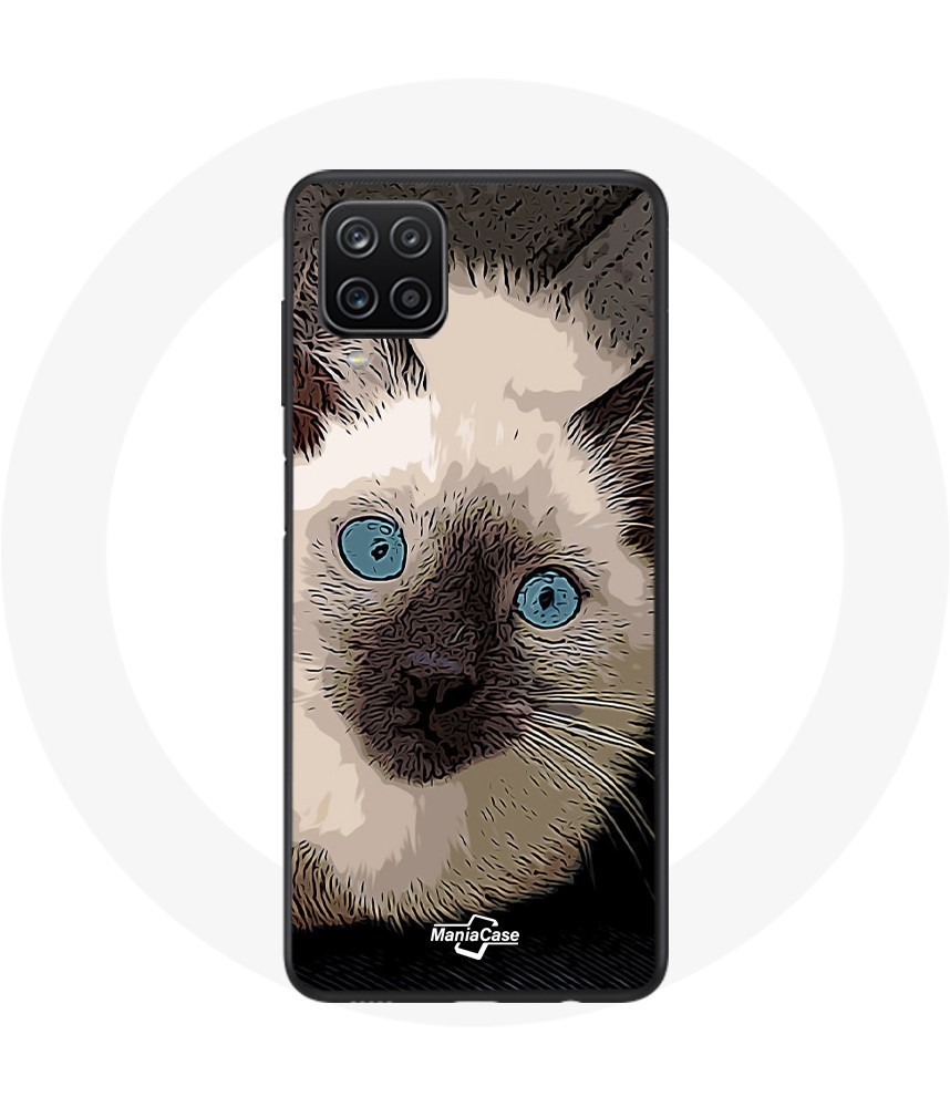 Coque Samsung Galaxy A12 Chat Siamois Noir et blanc aux Yeux Bleus