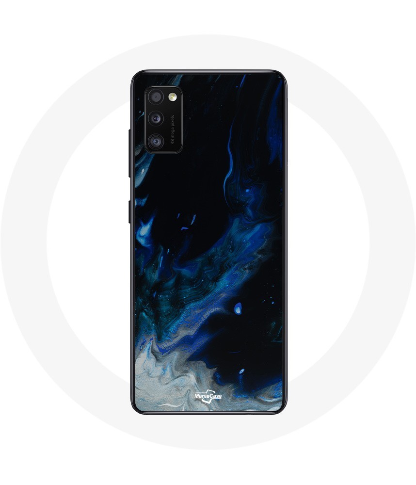 Coque Samsung Galaxy A41 Nuages de fumée multicolore de bleu gris et noir sur fond noir